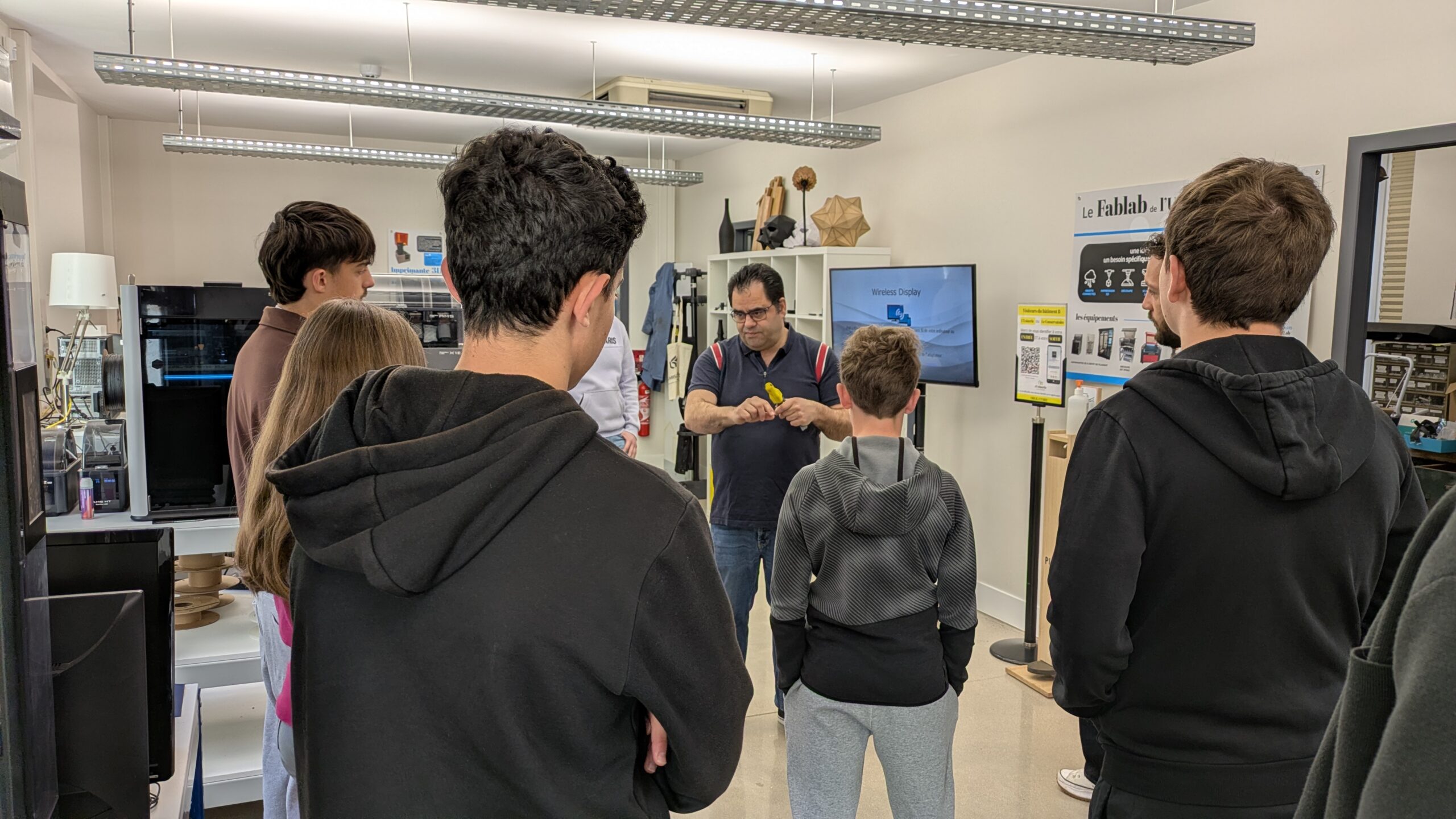À l’Usinerie, Jean-Claude DA SILVA, responsable du FabLab leur a fait découvrir les nombreux usages d’une imprimante 3D, d’un scanner 3D ou encore des outils de découpe laser, notamment pour la conception de pièces industrielles pour des entreprises comme Framatome ou Verallia.