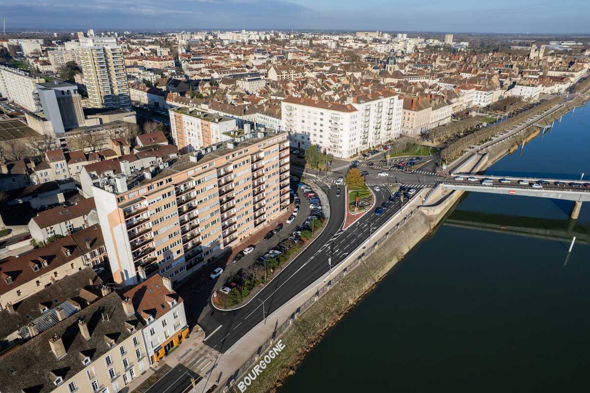 Débuté en février 2025, ce chantier a duré 10 mois et offre à Chalon-sur-Saône une promenade continue le long de la Saône à la fois sécurisée, fonctionnelle, durable et esthétique. Cet espace urbain conjugue circulation douce, infrastructures modernes et espaces verts de qualité.