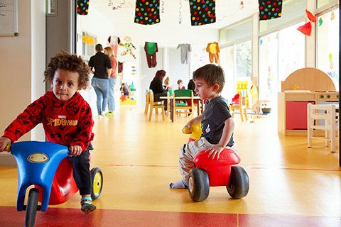Cet espace est aménagé et pensé pour permettre aux enfants de vivre leur première expérience en collectivité avec la présence rassurante de leur parent.