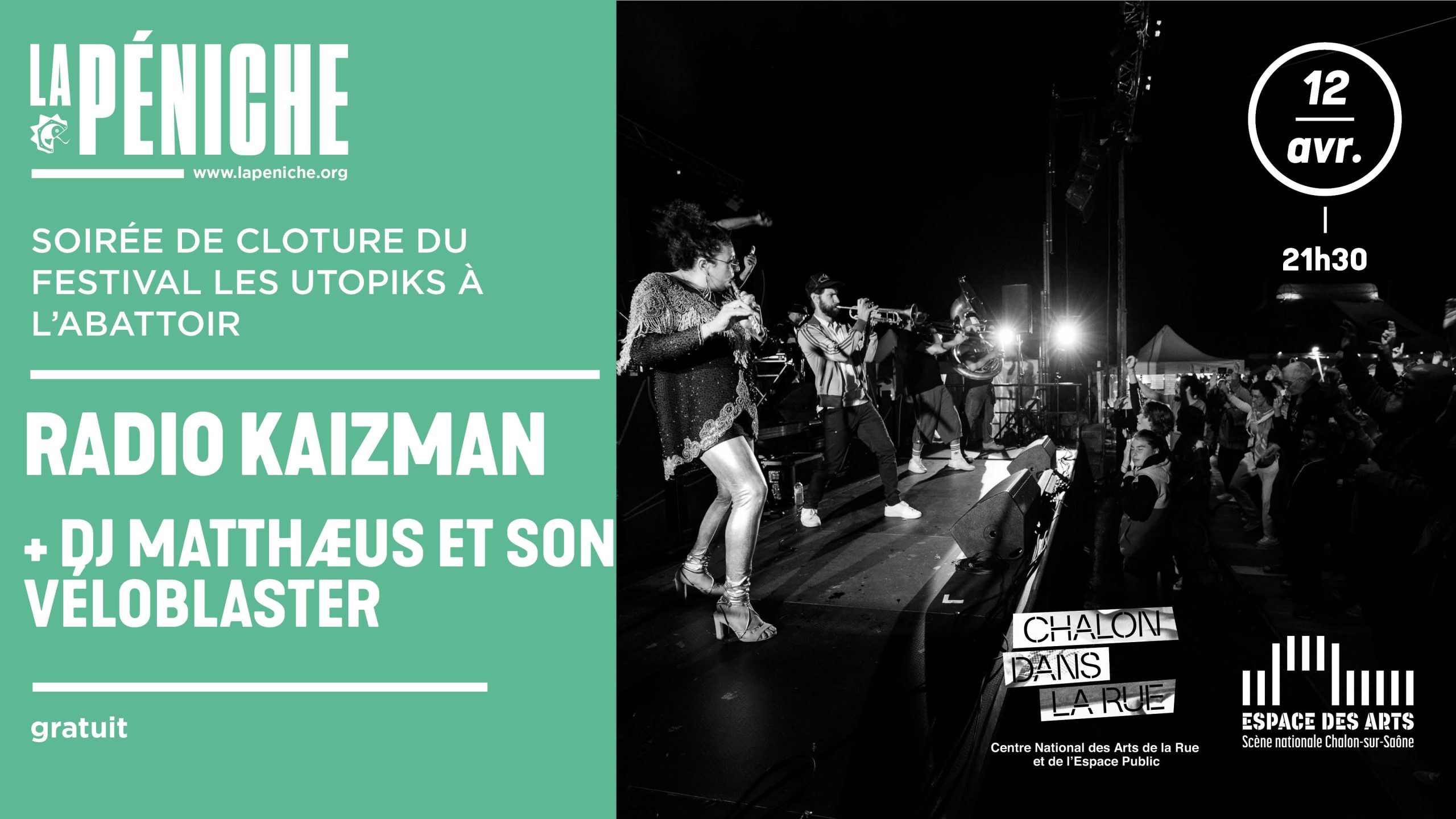 En embarquant le hip-hop et la fanfare dans une histoire commune, Radio Kaizman propose un cocktail détonnant et unique ! Influencé par le bouillonnement musical de la Nouvelle Orléans et les beats du rap US, le groupe façonne son répertoire, mené par ses deux vocalistes. Riffs ultra chauds, batterie hypnotique et cuivres incisifs soutiennent un flow aiguisé parsemé de chants entêtants. Dans la rue ou sur scène, Radio Kaizman redéfinit la fanfare et ses représentations, dans une esthétique hip-hop constamment renouvelée. En ressort une irrésistible envie de rejoindre la team dans une fête improvisée aux allures de Block Party.