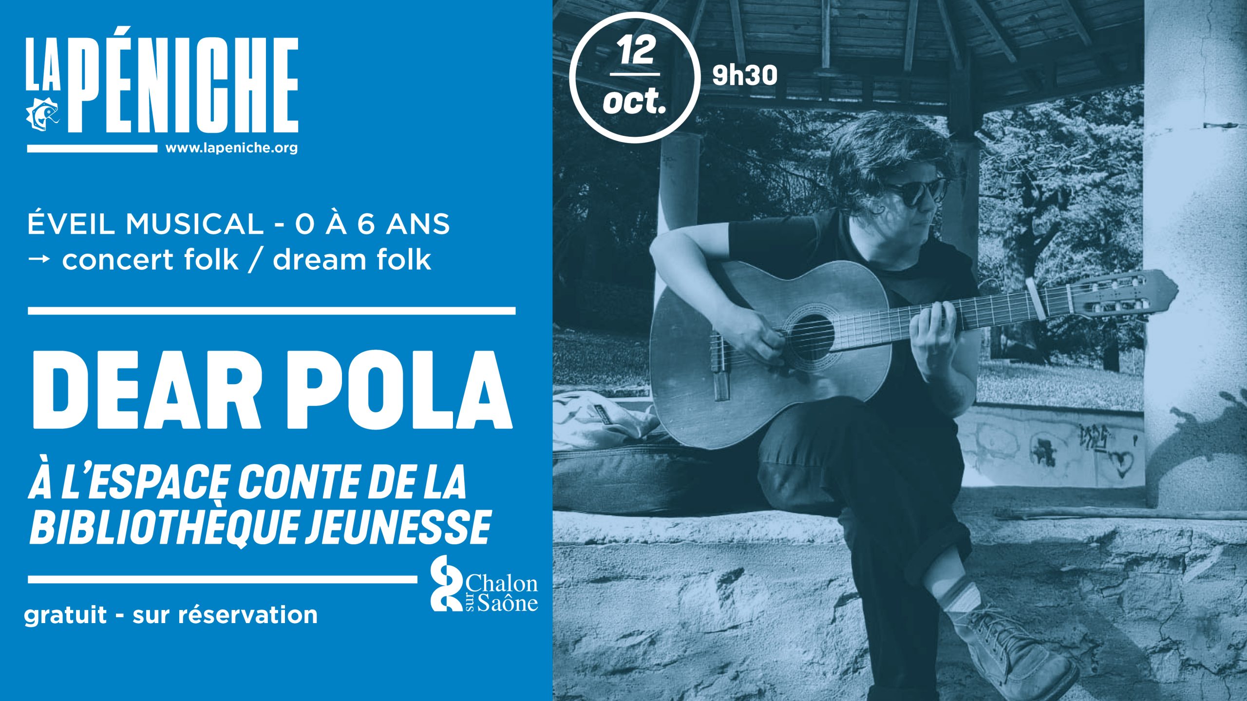 Initiez vos enfants à l’universalité de la musique avec Dear Pola : une artiste Folk envoûtante qui vous propose 30 minutes d’éveil musical, de 0 à 6 ans, à la bibliothèque jeunesse de Chalon-sur-Saône.