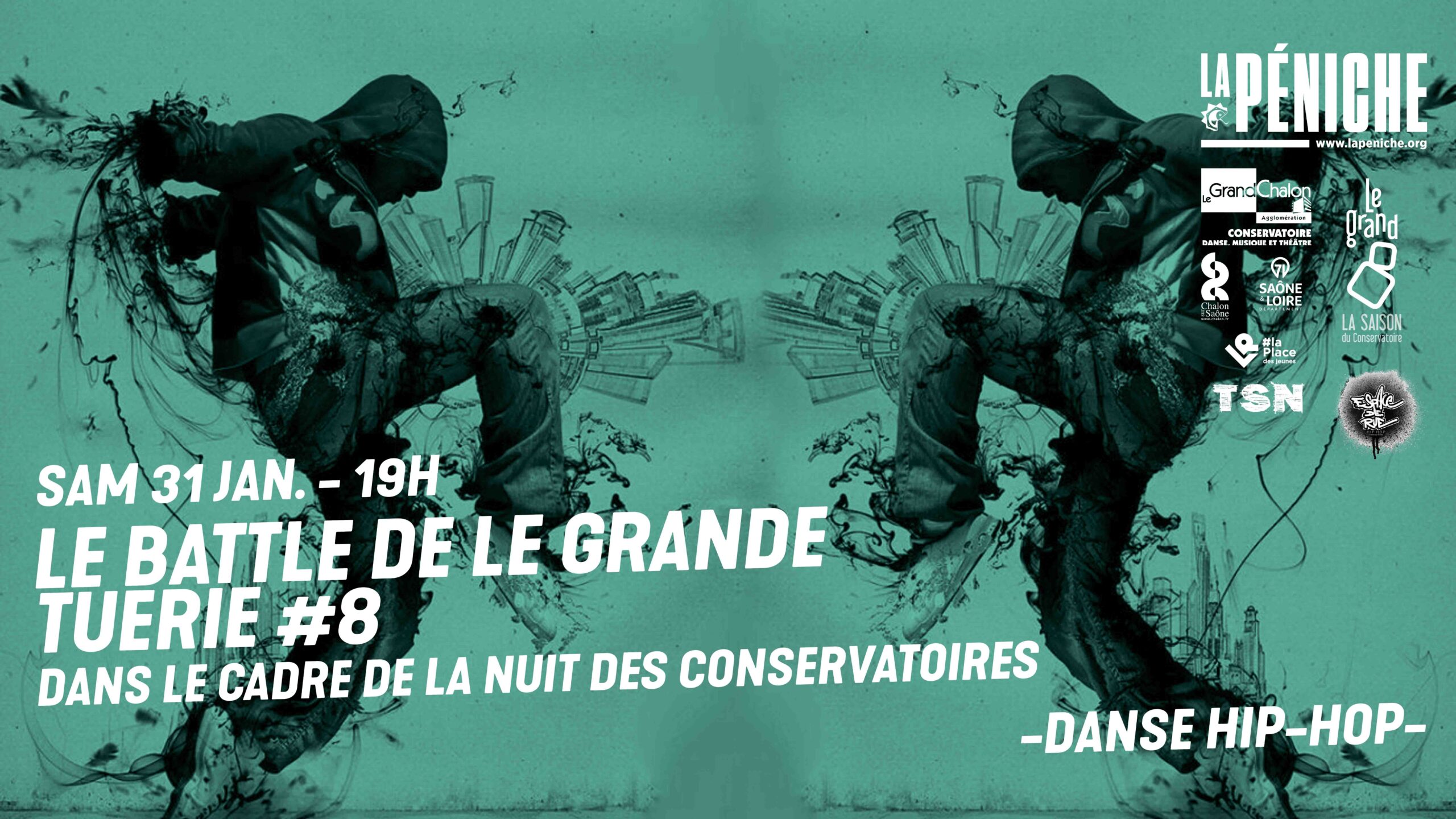 Organisé par la Compagnie TSN en partenariat avec le CRR du Grand Chalon, LaPéniche, l’Espace de Rue et le Service Jeunesse de Chalon-sur-Saône, et soutenu par le Département de Saône-et-Loire, ce battle promet un niveau exceptionnel.