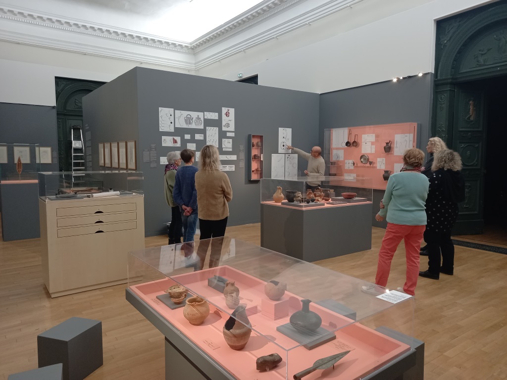 Accompagné par un médiateur, découvrez l’exposition Trait pour trait sur les techniques, usages et apports du dessin pour la recherche archéologique.